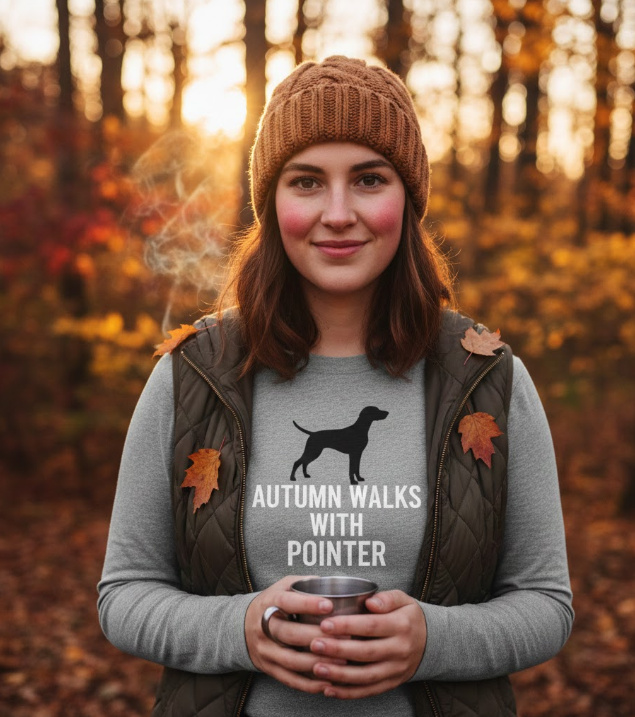 Looking for a cozy gift for a pointer dog owner? This “Autumn Walks With Pointer” t-shirt captures the joy of crisp fall strolls with your furry friend. Grab…